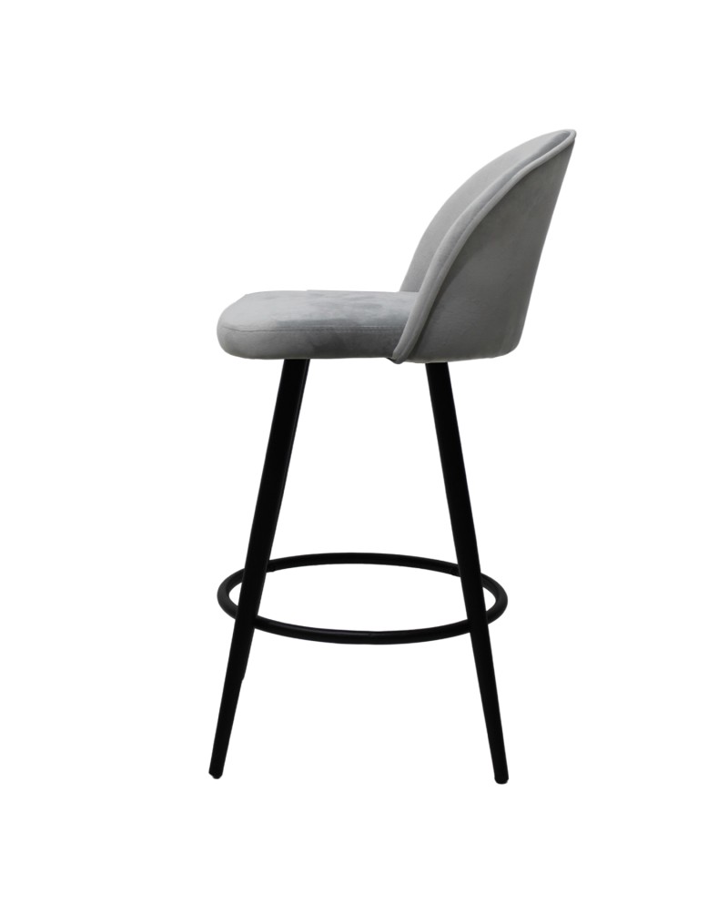 Forrado con tela, cuenta con una base firme de metal con soportes estilizados en acabado mate.